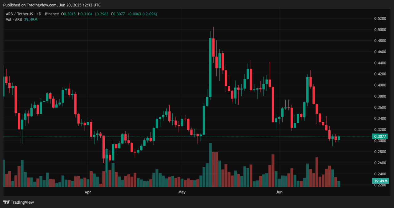 Despite a recent price dip of around 14% to $0.30, Arbitrum remains nearly 86% below its January 2024 high of $2.40, presenting an attractive entry for traders eyeing a technical rebound. The ecosystem’s momentum and continuous developer incentives point to a likely resurgence once broader market sentiment stabilizes.