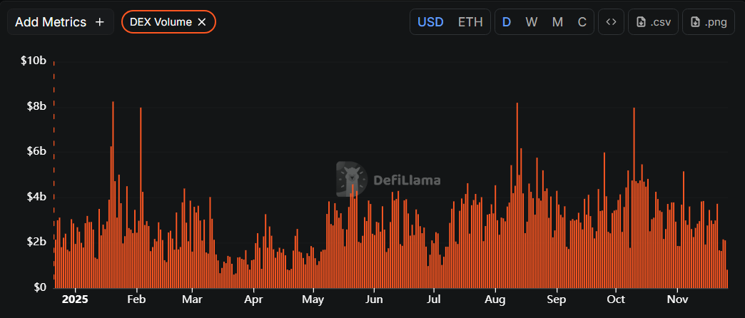 Uniswap’s roughly $985M in protocol fees from Jan to Oct 2025 highlights how large its trading base has become. SushiSwap, by comparison, reports revenue in the low tens of millions, depending on the quarter and the chain.