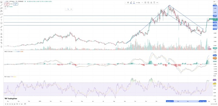Looking at its chart on the daily timeframe, you will realize that SUI has been setting higher lows and higher highs, confirming its readiness to breakout.