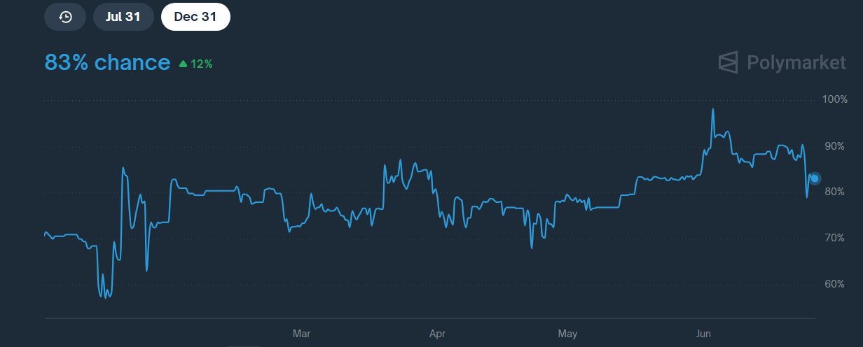 In fact, Polymarket data indicates an 83% probability of a U.S. XRP Spot ETF approval in 2025—a development that could unlock significant institutional inflows.