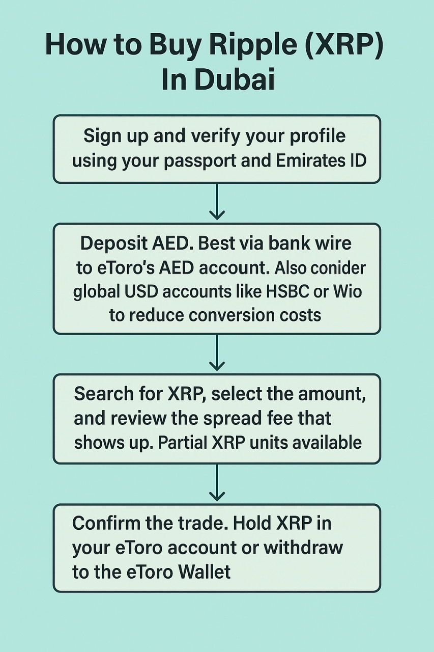 Learn how to buy Ripple (XRP) in Dubai using AED through regulated platforms like eToro and Rain. This guide covers secure, compliant, and cost-effective options for UAE residents.