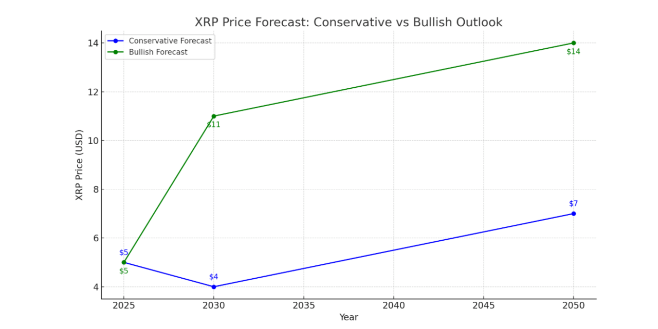 Forecasts suggest XRP could double or triple over the next few years, hitting $4 by 2030 in conservative models and even $11 by mid‑century under sustained growth .