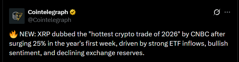 This setup explains why XRP posted stronger gains early in 2026, even as broader crypto markets moved more slowly.