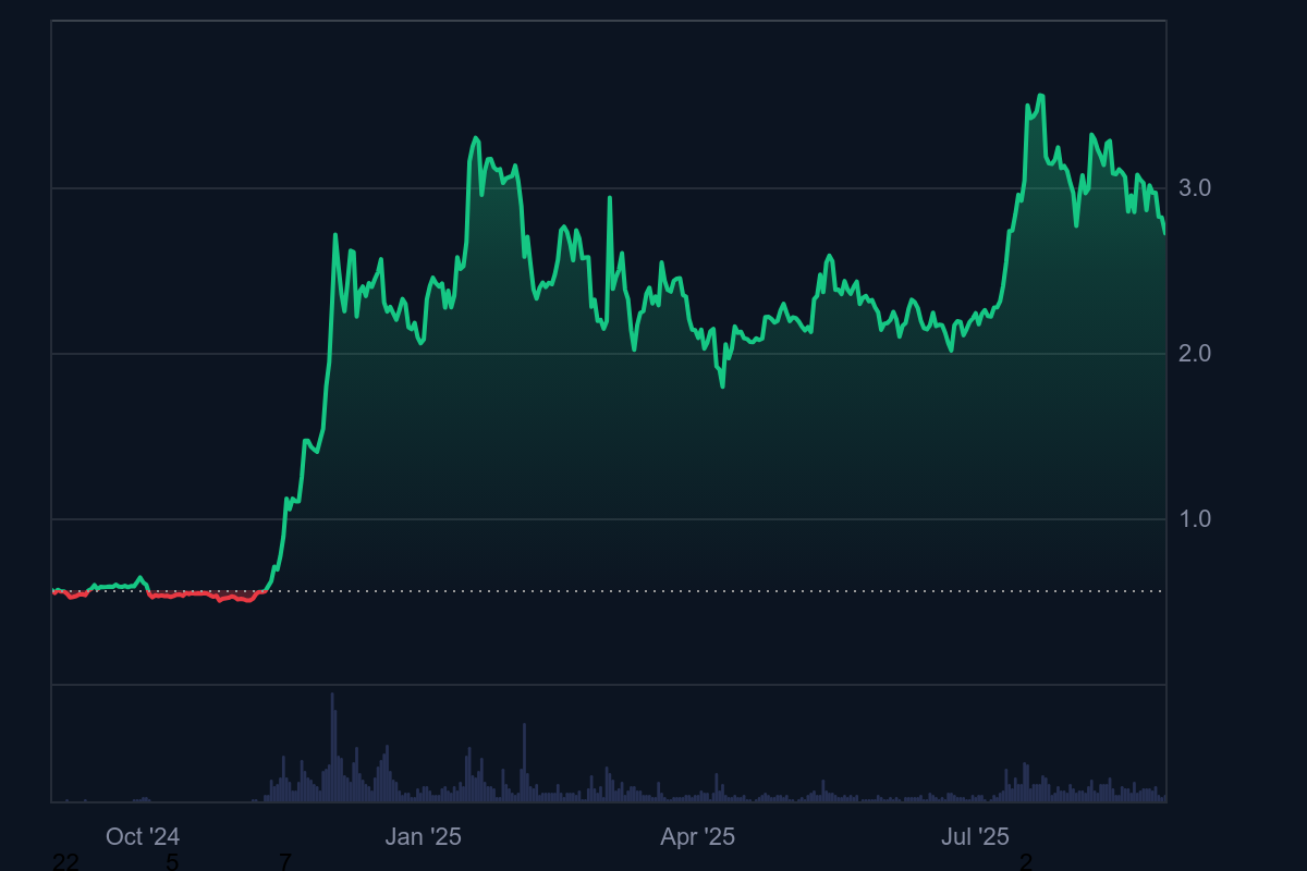 It is up about 745.2% over three years, based on exchange price snapshots for Aug 30. Its market cap ranks among the top three cryptocurrencies, which supports deep liquidity and tradability.