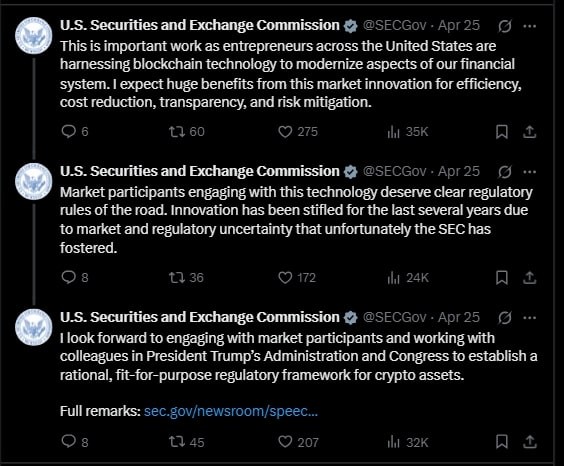 In January, the SEC set up a task force dedicated to developing a clear regulatory framework for crypto assets. The newly appointed SEC Chair, Paul Atkins, has also said that the crypto sector deserves clearer regulations.