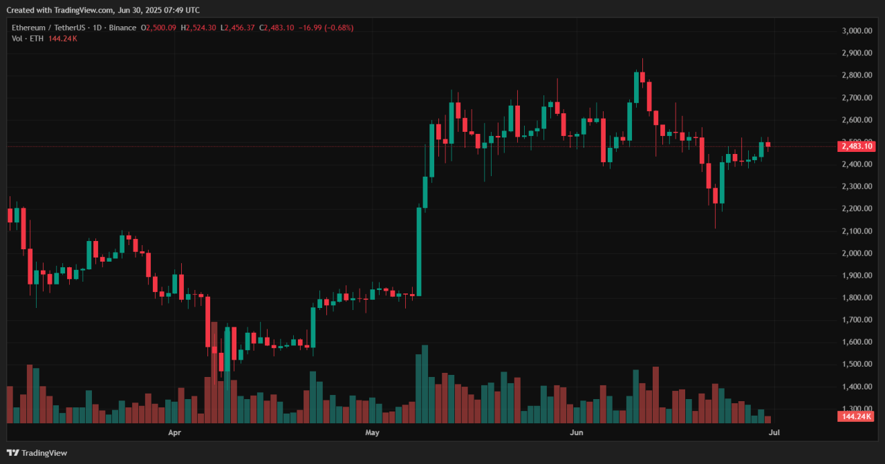 Ethereum’s price is coiling within a textbook bull flag on both daily and weekly charts. After climbing sharply into the $2,800 region, the flag-shaped consolidation suggests a continuation rally.