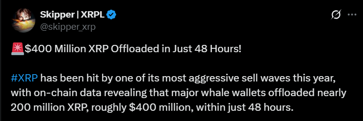 - XRP fell from $2.65 to $1.98 after a $400M whale sale and increased selling by long-term holders, but buying interest quickly returned.