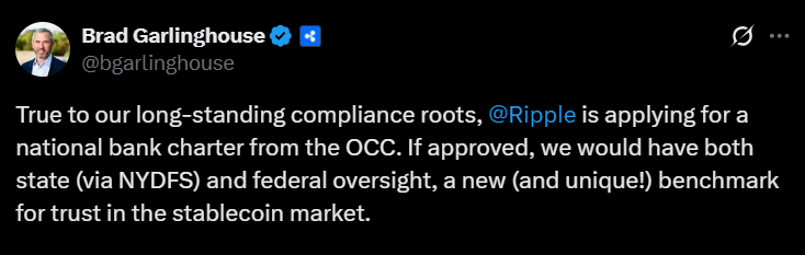 Reports now show Ripple exploring a U.S. banking license, a move that could open direct partnerships with banks and regulated custodians.