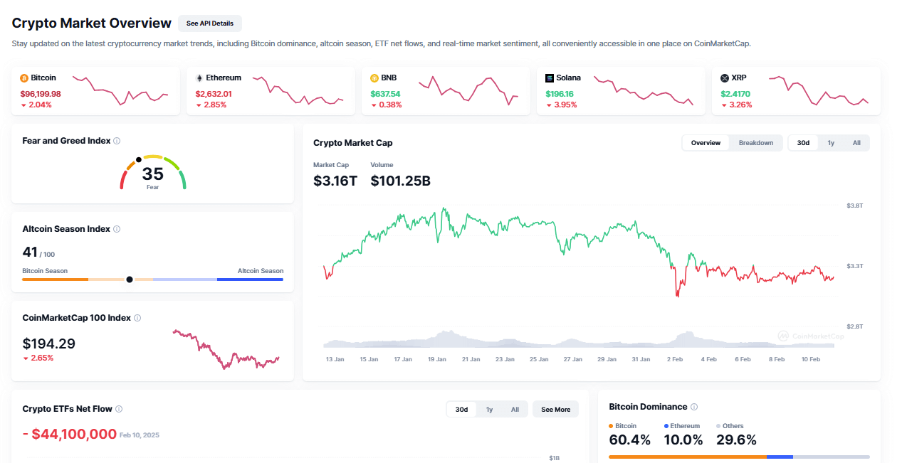 At press time, Bitcoin had lost close to 3% of its yesterday’s highs and to $94,875 – its lowest point in the last seven days. This effectively wipes all the gains it had made since the Feb. 3 market crash.