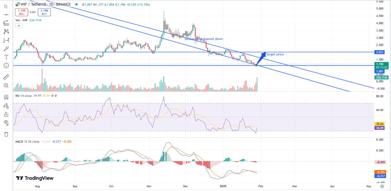 Technical analysis indicates WIF has Found a Bottom Around $1