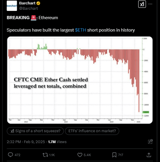 ETH Short Positions Largest in History