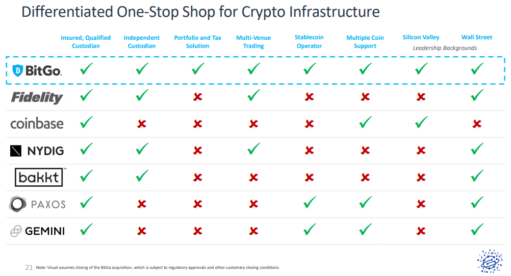 - A reverse termination fee of $100 million payable to BitGo if the transaction has not been completed by December 31, 2022.