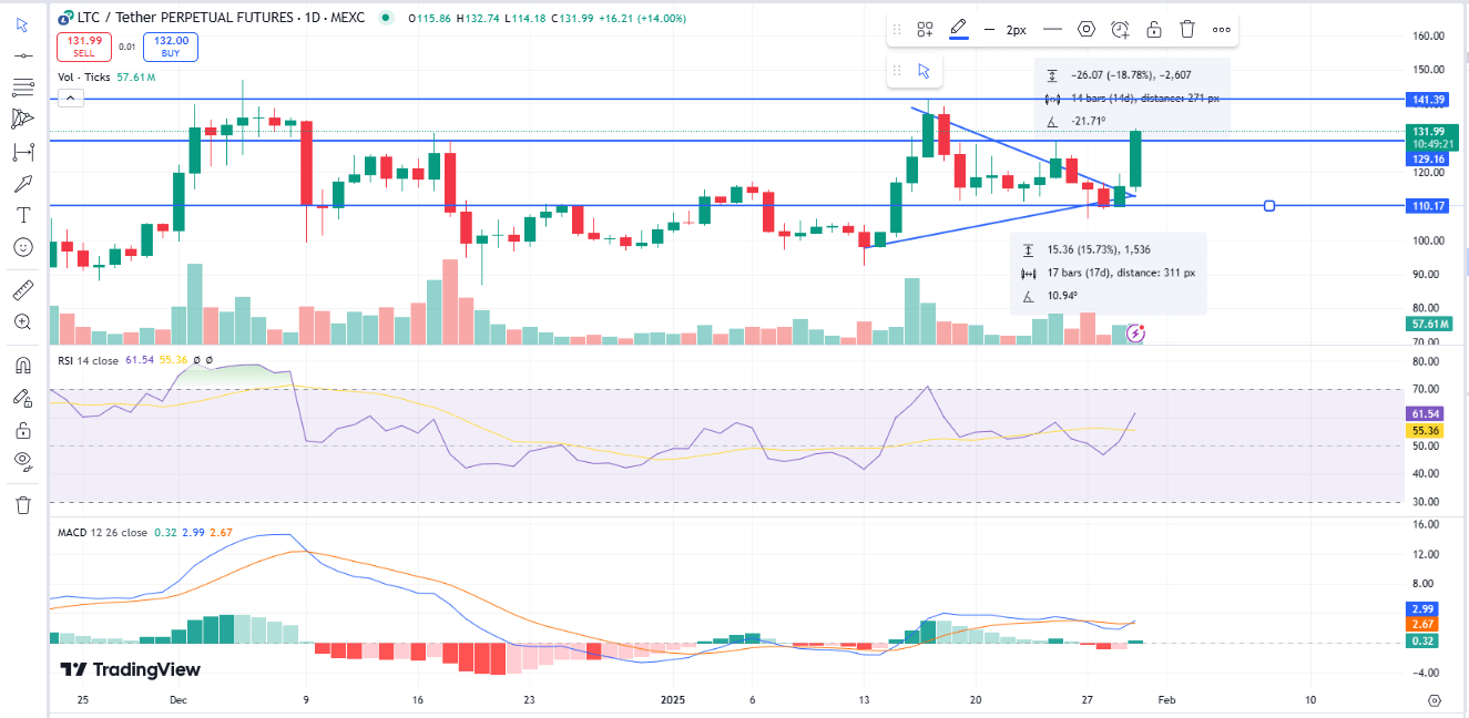 Big news for Litecoin as LTC prices surged by 19% to hit $133 in the last 24 hours, and technicals are currently hinting at a possible rally towards $200