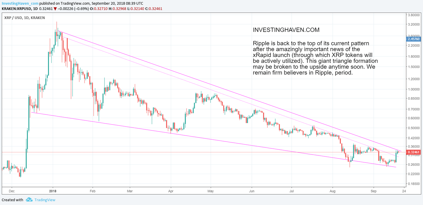 Ripple‘s 30% rally early this week came as a relief to many crypto investors. Not only did this happen at an important point on Ripple’s price chart but the news itself on which it moved is a textbook example of the 1% news that matters to investors! Moreover, with this move, Ripple is attempting to break out from its 8 month downtrend. We watch Ripple’s breakout attempt of 2018 closely!