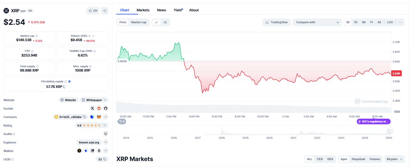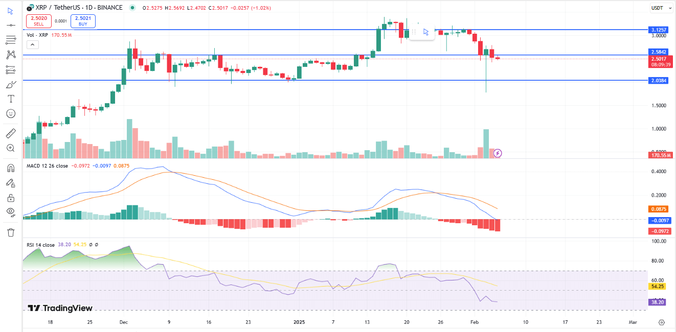 XRP has lost more than 5% in the 24 hours, crushing investor hopes of a speedy rebound towards $3 after Ripple Network suffered a 64-minute outage.