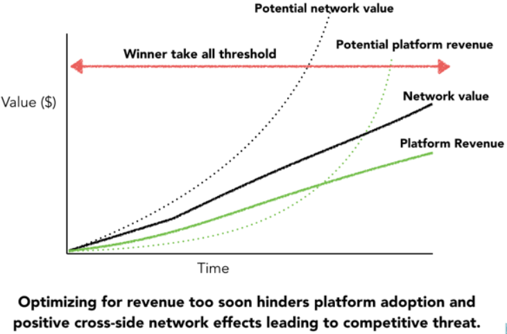 Shout out to Chris Smith on Medium.com who published this picture which is exactly what we were looking for: network effects! Mind the difference between the ‘right path’ (black lines) vs. the pitfall (green lines).