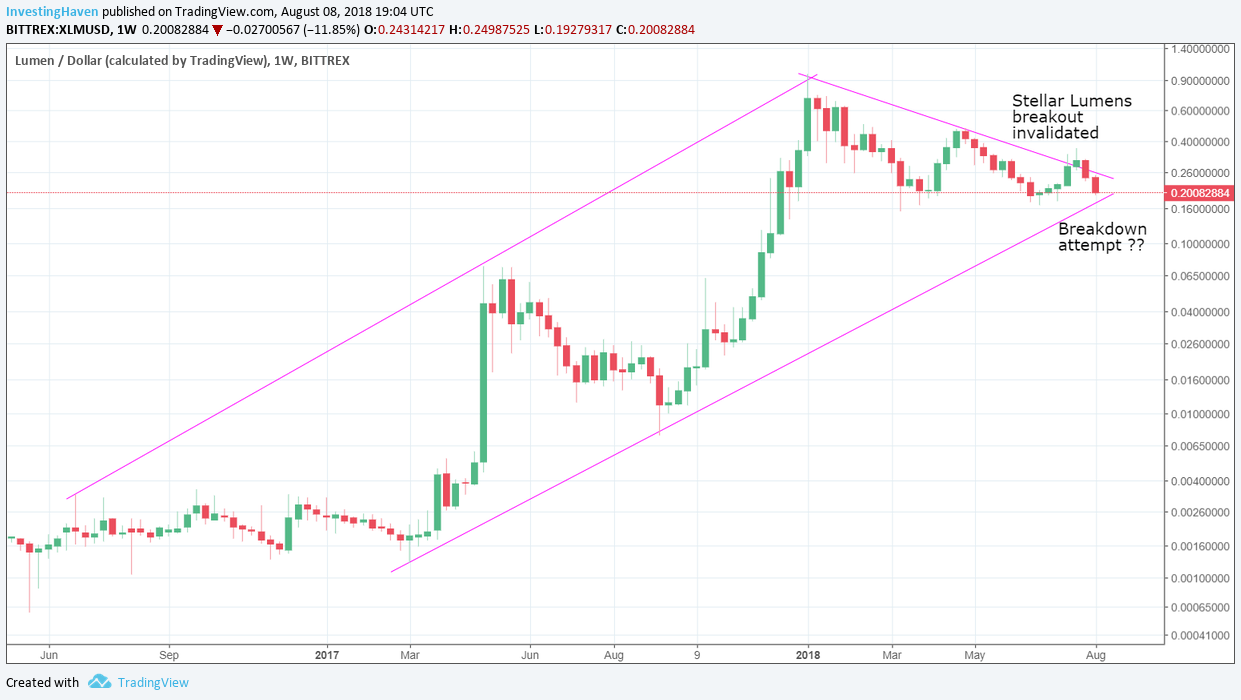 Stellar Lumens is one of the top altcoins. In a bull market altcoins go up harder than Bitcoin. In a corrective phase it is the opposite. Because of this, Stellar Lumens is suffering more than Bitcoin during this crypto crash.