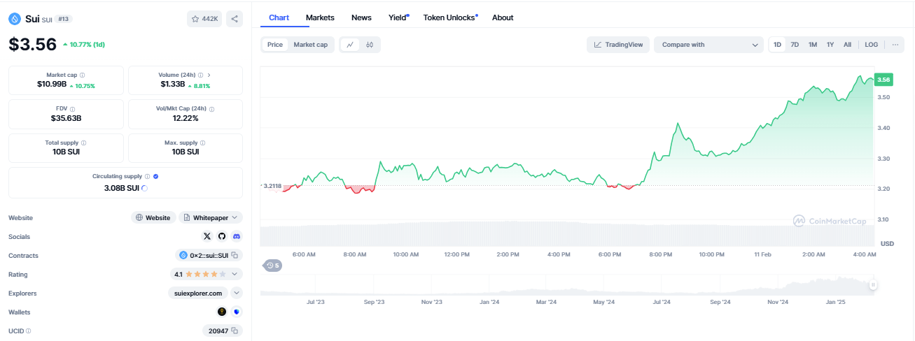 In reaction to the news, SUI token prices rallied by more than 10% to break above the key resistance level of $3.29 to hit an intraday high of $3.57. Its trading volume also rose by close to 10% to reach $1.33 Billion.