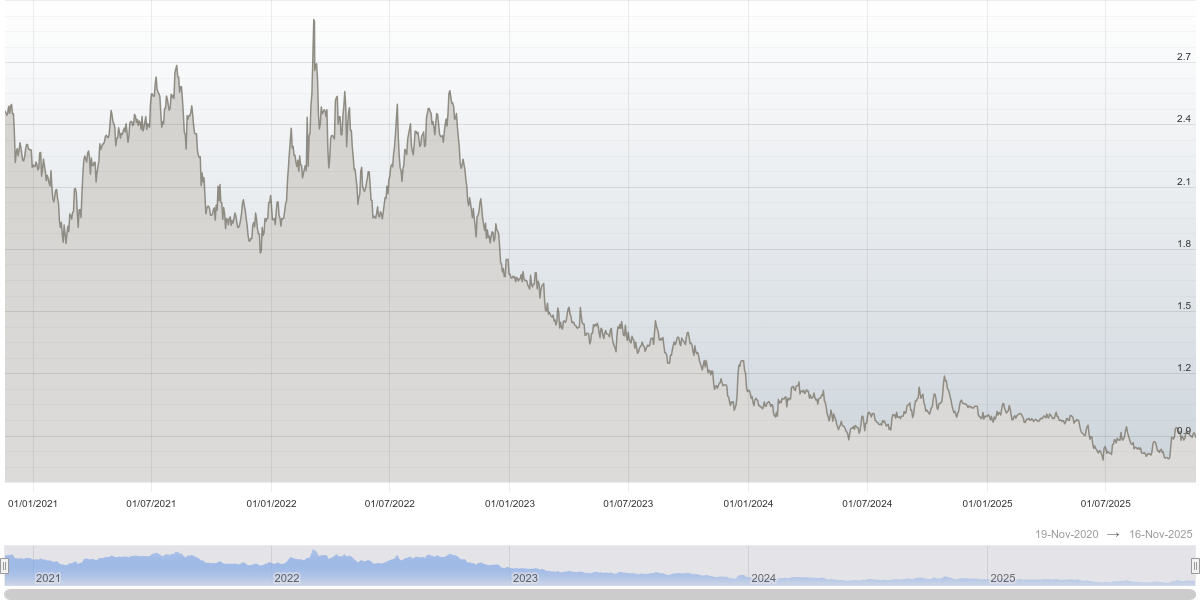 Palladium currently trades around $1,376/oz, after gaining earlier in 2025 then sliding from its peak.