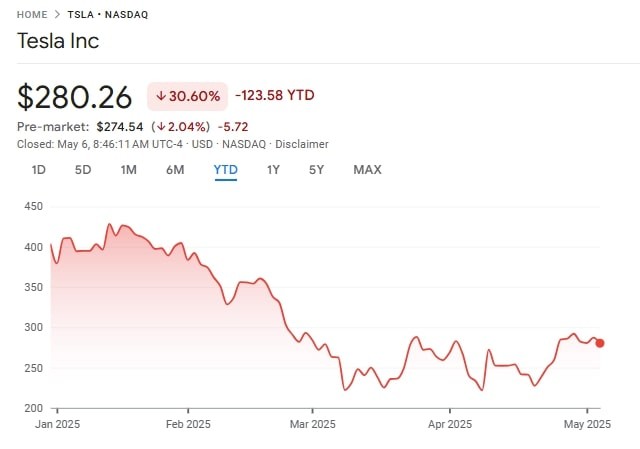 Take, for instance, Tesla stock, which is down by more than 30% in the year due to concerns over declining sales, increased competition, and CEO Elon Musk’s political engagements.