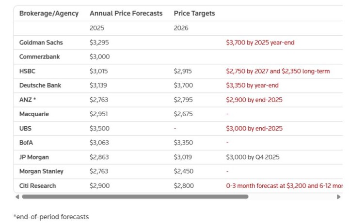 Forecasts for gold by Goldman Sachs stretch as high as $3,700 by year-end, with some analysts expecting a continued run into 2026.