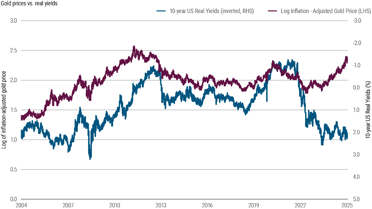 - TIPS-implied 10-year real yields and gold prices for trend direction.