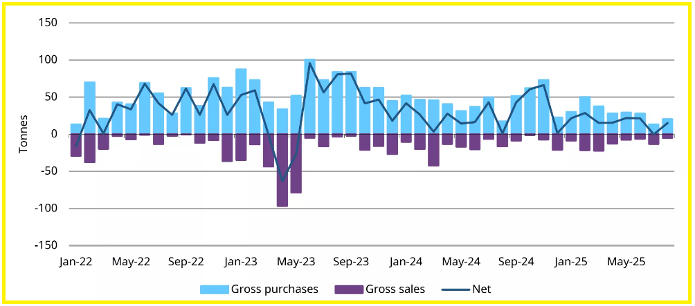 Many reserve managers have added gold this year to diversify holdings and increase reserve liquidity. Official reports show a rebound in central-bank buying, with a notable 15 tonnes of purchases recorded in August.