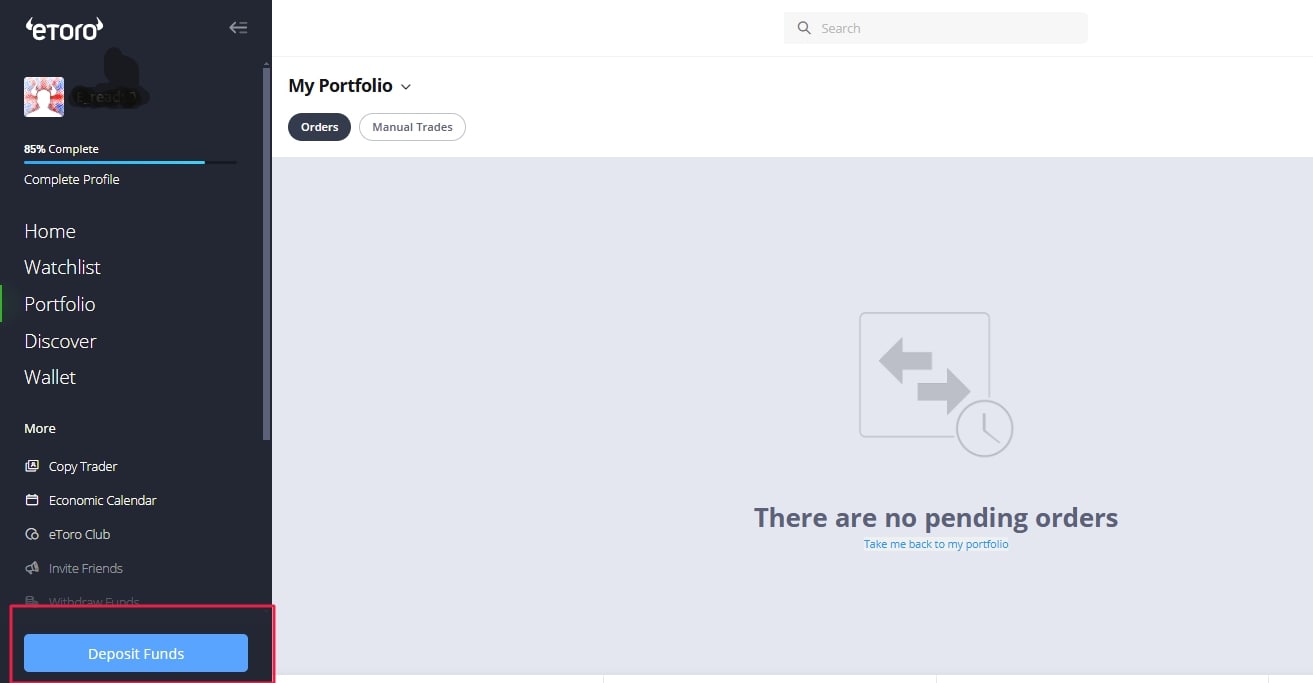 Step 1: Start by logging back into the eToro trading account.