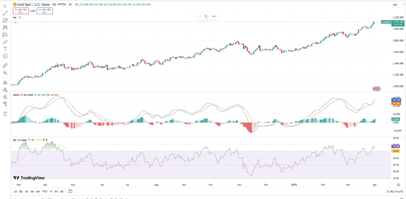 On its journey to $3,122, gold prices were influenced by such factors as heightened global tensions ignited by the enforcement of trump tariffs.