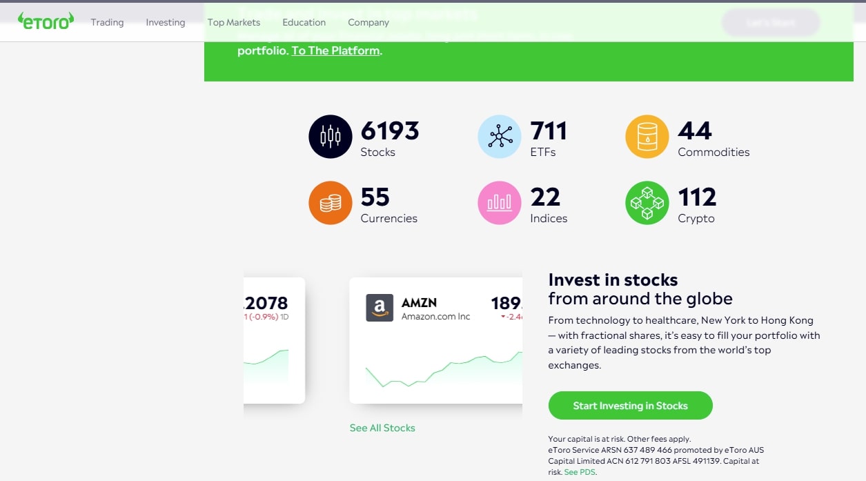 When dealing with online brokerages like eToro, you can only buy and sell gold stocks and ETFs. Stocks, in this case, refer to investments in publicly traded companies that deal with gold at any stage of the supply chain, from mining to refining or even storage/custody services.