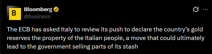In early December 2025, Italy proposed a budget amendment that describes the Bank of Italy’s gold as property of the people.