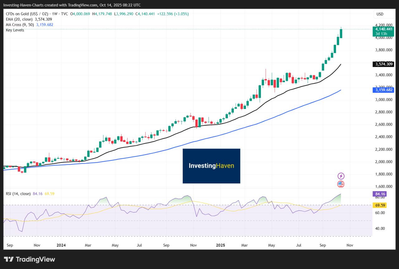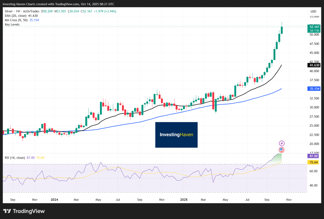 Technical data points show that gold and silver could be overheating. The Relative Strength Index (RSI), a common momentum gauge, stands near 80 for gold and 83 for silver.