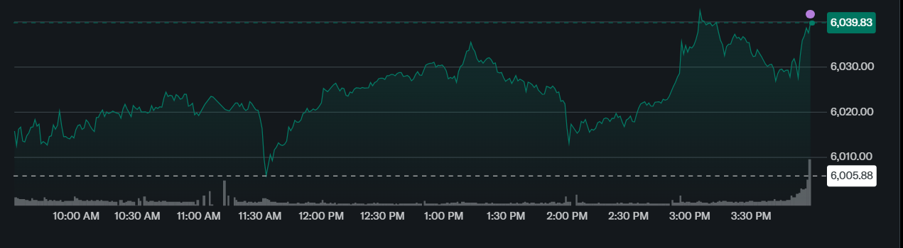 Equities have surged on the back of solid economic data and big-tech optimism. The S&P 500 is hovering around 6,020, less than 2.3% below its all-time high of 6,144.15, supported by strong jobs numbers and improved U.S.–China trade sentiment.