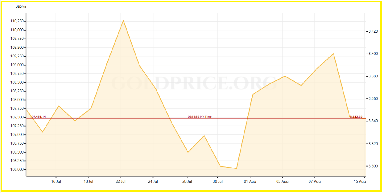 Gold now trades around $3,340–$3,360 per ounce following weakening dollar and elevated rate-cut expectations, while silver and platinum chart robust gains so far this year.