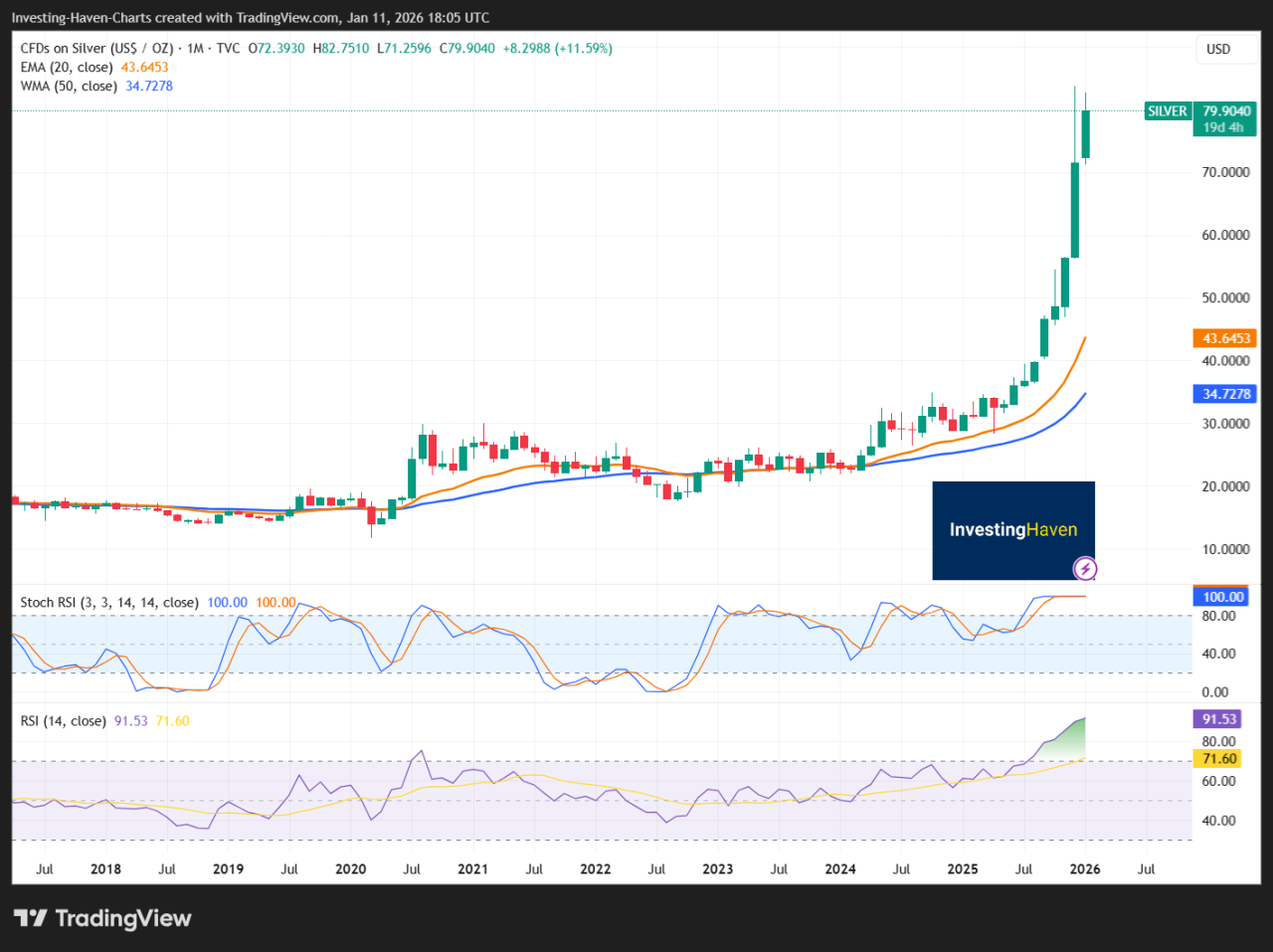 Silver’s trajectory is not so different. After a 147% gain last year and rapid moves this month, even small changes in sentiment can trigger sharp swings.