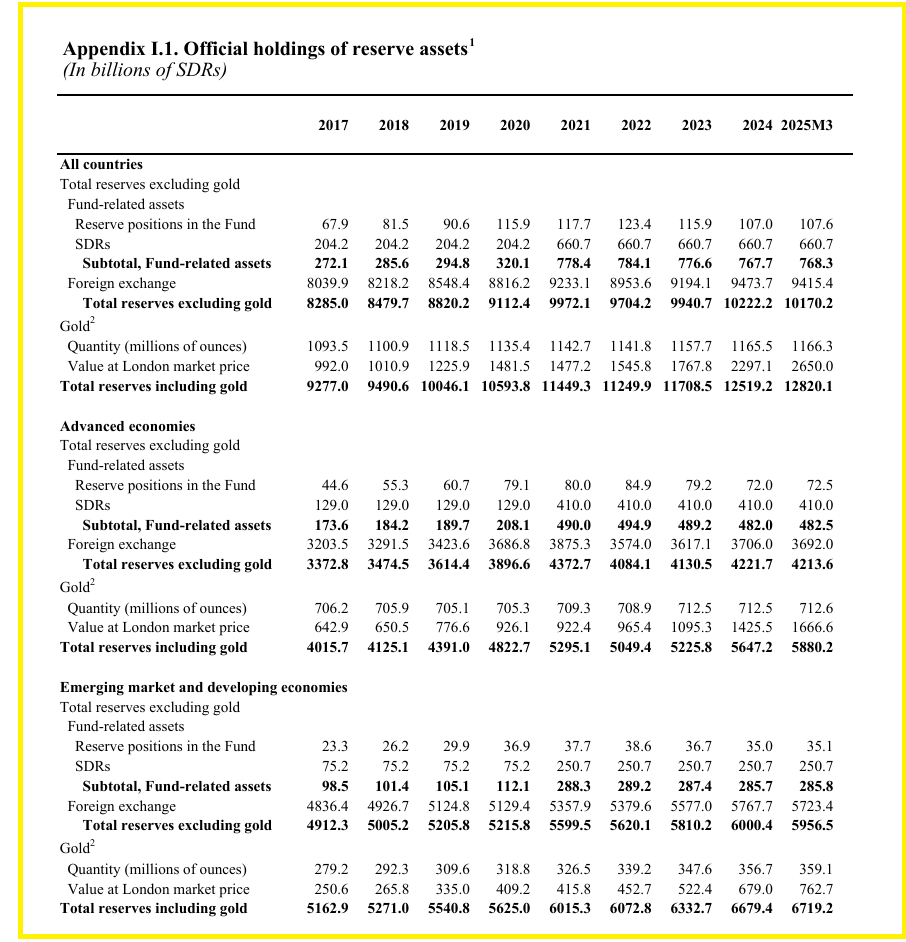 At the same time, IMF reserve data confirms that the market value of gold held by monetary authorities rose sharply, increasing gold’s weight inside global reserves.