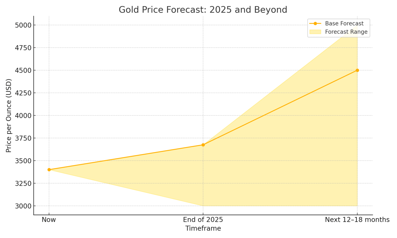 Looking ahead, many analysts are optimistic. JP Morgan recently forecasted gold could approach $3,675 by the end of 2025, with some experts like Ed Yardeni even projecting $4,000 to $5,000 per ounce within the next 12–18 months.
