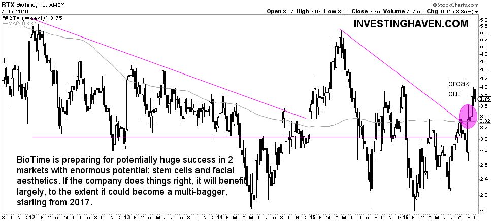 Biotime (symbol BTX) 10-bagger potential between 2017 and 2020
