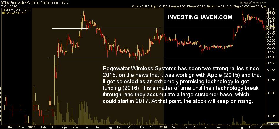 Edgewater Wireless (symbol YFI.V) small-cap stock with 10-bagger potential as of 2017
