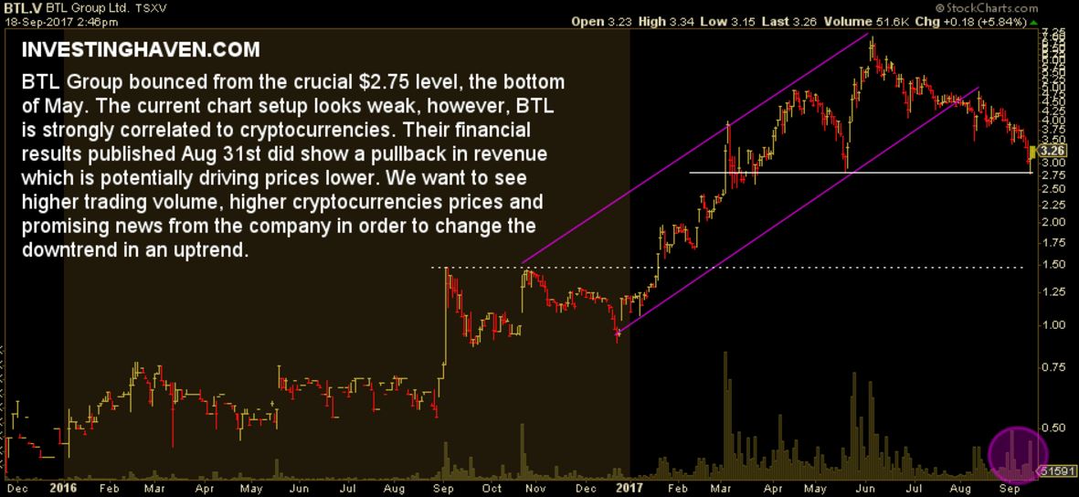 - BTL’s stock price bounced exactly at the bottom of May of this year. In May, the stock price exploded when the company released promising news on their Interbit platform. Will it be the different this time? We don’t know but there is certainly a need for promising results, not simply good news but news that indicates customers are willing to pay and/or new orders.