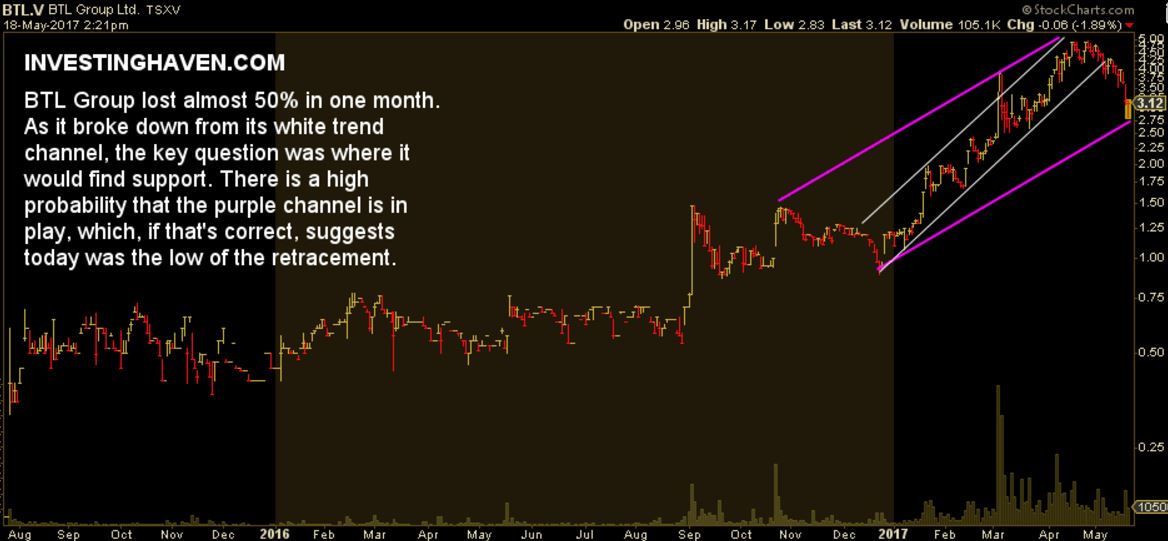 After a fall of 50% in one month, it could well be that this was it. Unless BTL goes below $2.75, we are confident getting in at these levels again.