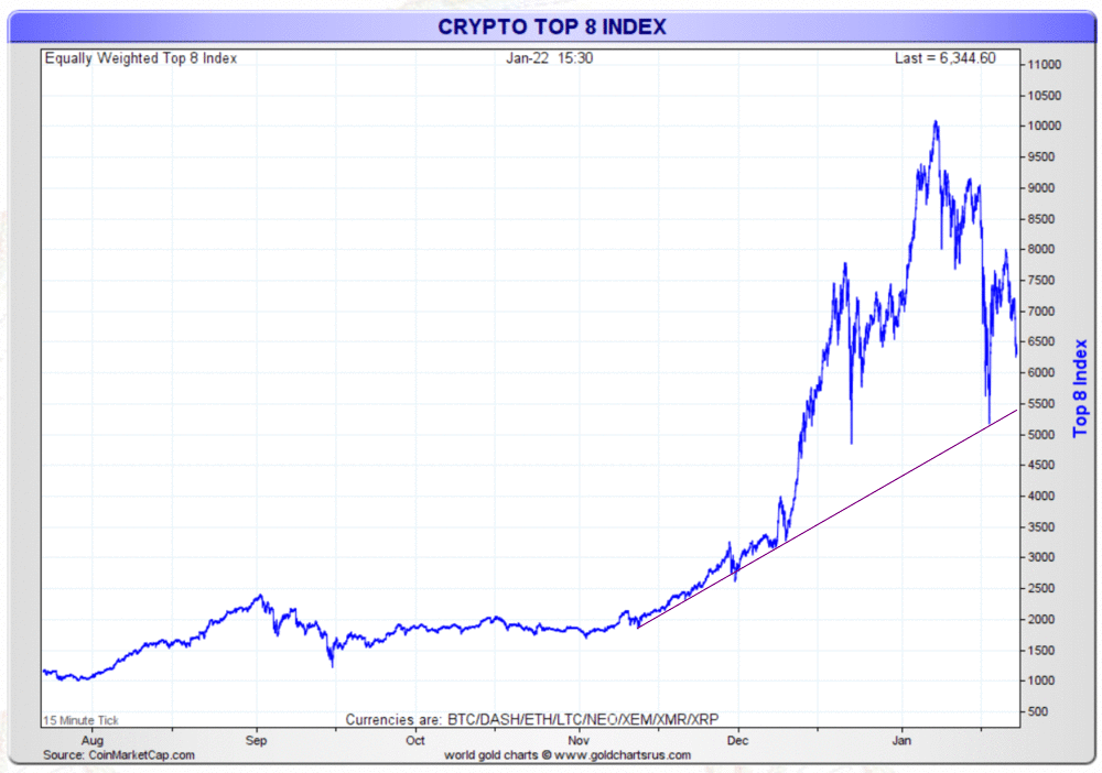 Cryptocurrencies are falling, very hard. What’s interesting is that many investors were seduced to buy after prices went up 10-fold. Now that most crypto prices have retraced 50 to 70 percent they are seduced to sell.