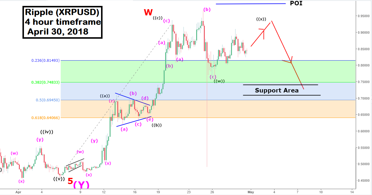 Summary for Ripple’s Elliot Wave price analysis on the 4 hour timeframe on April 30th: