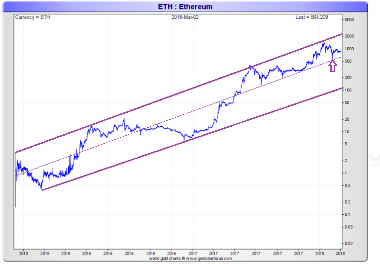 The chart below is a log scale price chart showing Ethereum Price’s performance since inception. It is a truly impressive uptrend especially considering that Ether was trading around 10 USD towards the beginning of 2017. We were expecting the price to possibly back test its breakout level at 400 USD but Ether got bought back at the first major price dip and never actually touched the 400 USD breakout level.