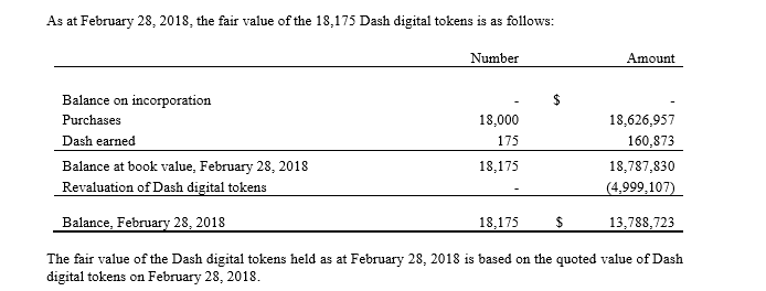 - The financial statements currently show that Dash is running with CAD 2.2M in cash and an impressive CAD 12M of deficit. What we believe could be misleading here is the CAD 12M in deficit. In fact, the deficit is more like CAD 7M. What about the CAD 5M? It’s the difference between their 18,000 Dash purchased at an average of CAD 1034 and the fair value of CAD 757 (excludes earned Dash) they used for the financial statement’s figures.