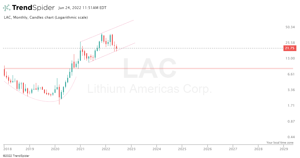 $LAC’s monthly chart is impeccable. A nice cup and a well defined ascending channel. If current levels hold, we might see a new ATH by 2023.