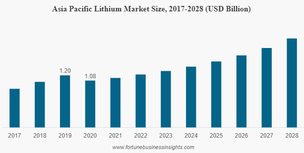 Last but not least, Fortune business insights is expecting Lithium’s global market size to go from $3.64 billion in 2020 to $6.62 billion in 2028.