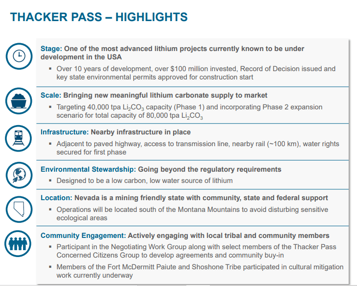 Thacker Pass, in Nevada. This is the largest known lithium resource in the USA and Lithium Americas is developing there with a goal to enable a US battery supply chain. See highlights below.
