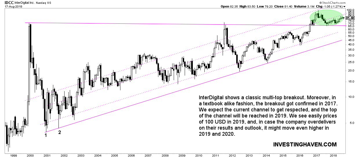 Our 2019 forecast for top stock InterDigital is 100 USD.
