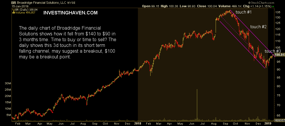 Broadridge Financial Solutions (BR) is a stock with a beautiful long term momentum pattern in the last 7 years. It now crashed from $140 to $90 in 3 months time, a decline of 36 pct. Is it time to buy or time to sell Broadridge Financial Solutions?